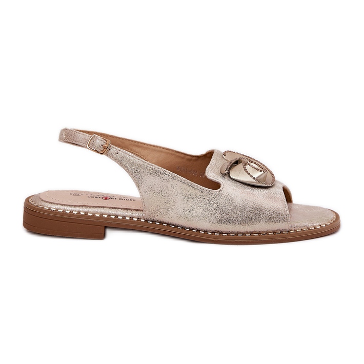 Sandály se na přední straně rozlišují jemnou dekorací, která do bot přidává jedinečné kouzlo. Vložení komfortních bot, vyrobené z přírodní kůže, zaručuje dostatečné odpružení a pohodlí nošení, dokonce i po dlouhé hodiny. Další funkcí je efektivní kovová barva, která přitahuje pozornost a perfektně jde s letními stylizacemi.