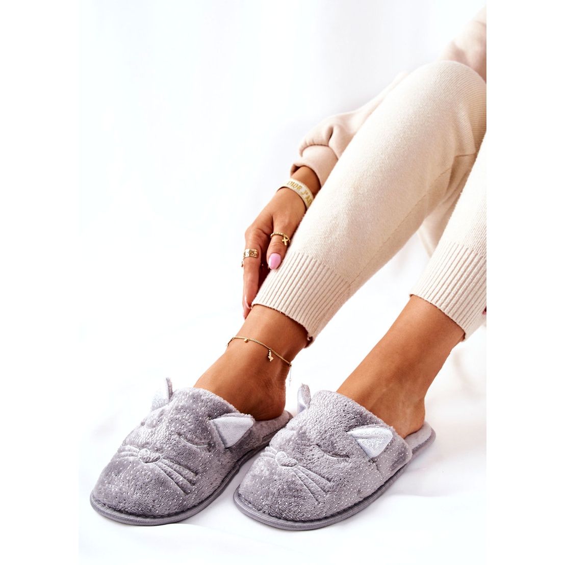 Podrobnosti: PE1 Lesklé kotěcí pantofle s šedýma ušima Kaisy šedá