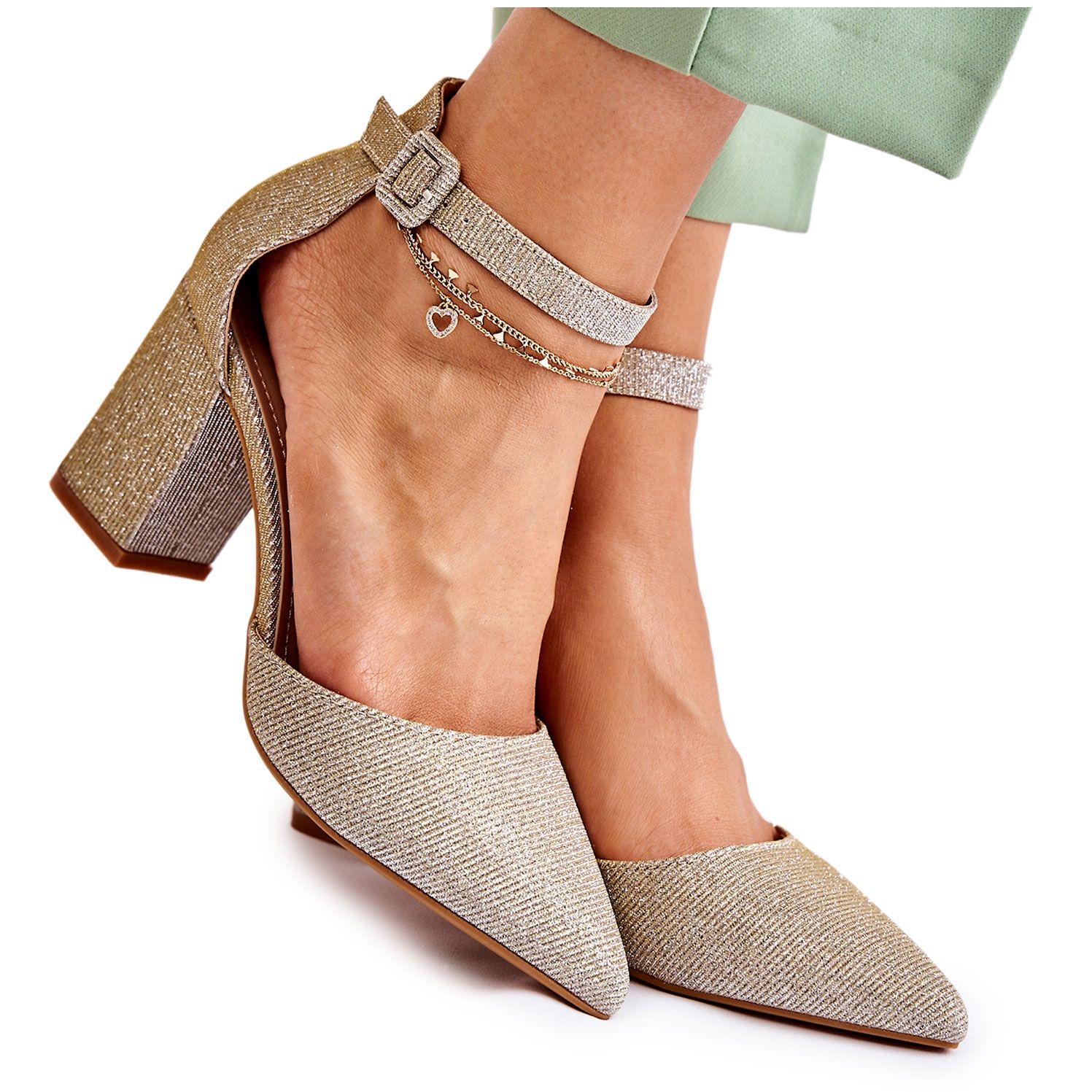 Představujeme mimořádné lodičky na vysokém podpatku značky WS1 v elegantní zlaté barvě - model Amira. Tyto působivé boty dokonale kombinují styl s pohodlím díky stabilnímu podpatku a nastavitelnému zapínání na přezku, díky čemuž perfektně padnou na nohu.