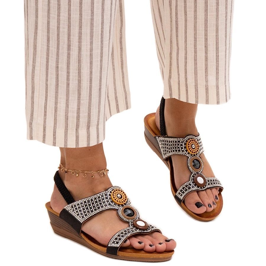 Objevte neobvyklé kouzlo léta s lesklými sandály na nízkém klínu Azeez v elegantní černé barvě! Tyto jedinečné boty jsou ideálním návrhem pro ženy, které si cení módy a pohodlí v jednom.
