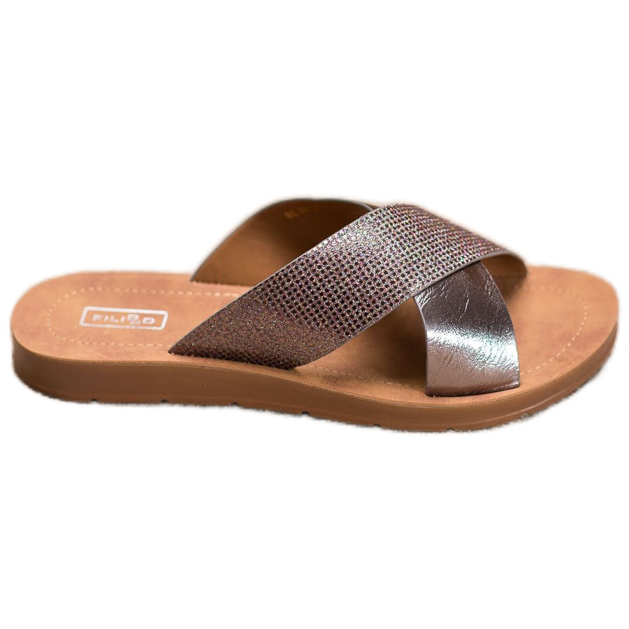 Filippo Filippo Lesklé pantofle z eko kůže šedá