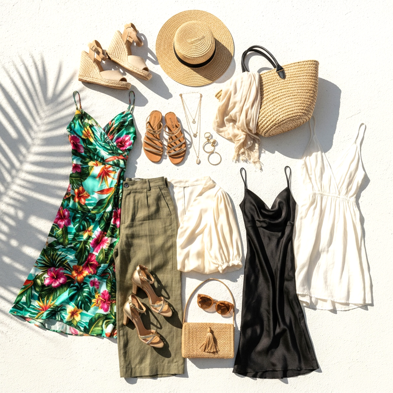 Pro letní svatby nebo oslavy: Resort oblečení je také perfektní základ pro letní obřady a svatby. Elegantní, ale lehké šaty, sandály na nízkém podpatku nebo kotěcí podpatky a přírodní šperky – to je personalizovaný styl, který vypadá jedinečně a nesrovnatelně.