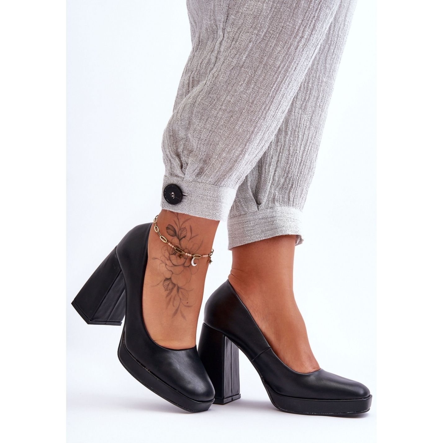 Stabilní, vyšší blok s výškou 10,5 cm a delikátní platforma s výškou 2 cm poskytuje bezkonkurenční pohodlí, což z nich dělá skvělé řešení jak pro práci, tak pro různé výstupy, jako jsou události nebo důležité schůzky. Módní čtvercový nos jim dává moderní charakter a ztužená pata je činí dokonale se přizpůsobit noze.