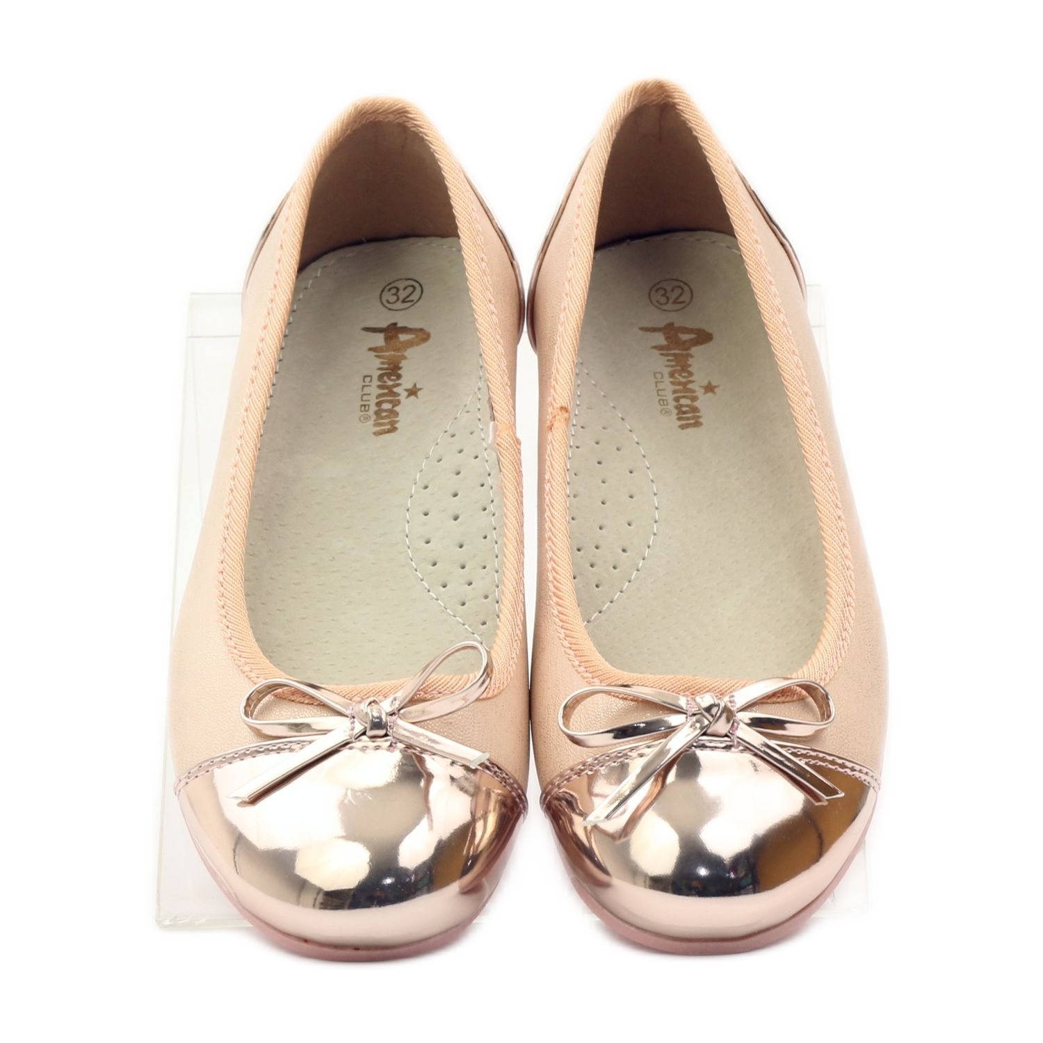 Objevte okouzlující balerínkové lodičky od American Club, které jistě potěší každou malou slečnu! Model wz.14297 se vyznačuje jedinečnou kombinací barev: pudrově růžové, zlaté a bílé, díky čemuž se skvěle hodí pro různé příležitosti.
