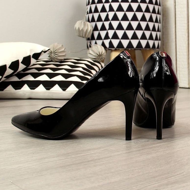 - Modelka: Lodičky na černém lakovaném jehlovém podpatku W Juma
