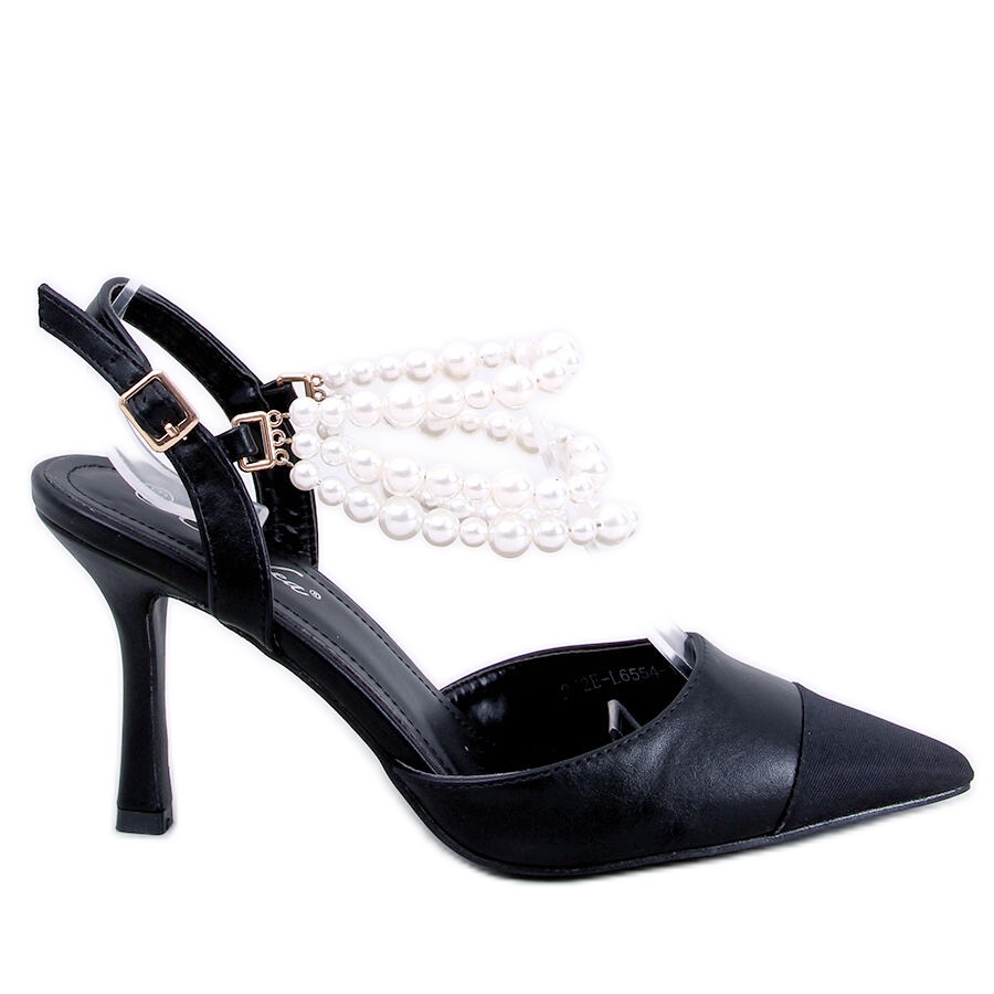 Lodičky na otevřeném podpatku s perlami Harmony Black černý