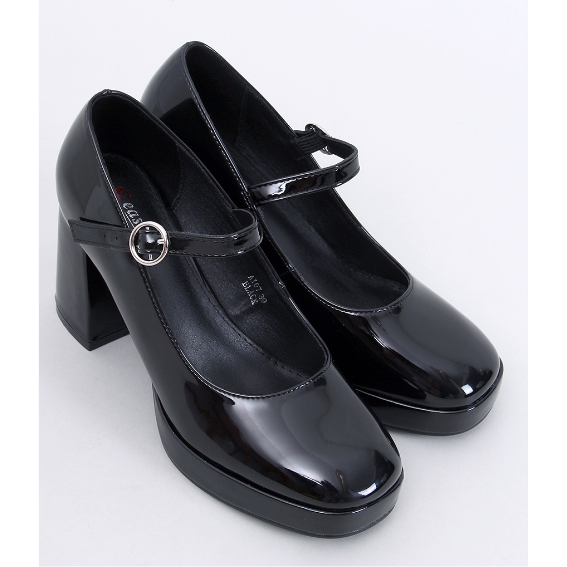 Díky široké 9 cm vysoké patě jsou tato čerpadla extrémně stabilní a dobře navržená 2 cm vysoká platforma je nošení potěšení, nikoli trápení. Dokonale se přizpůsobují noze a po celý den nabízejí pohodlí. Vyrobeno z lakované ekologické kůže, hladké jako sklenice skla, dokonale odrážejí světlo a přidávají nádheru jakékoli stylizace.