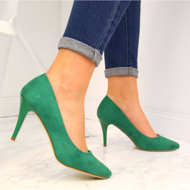 Lodičky na semišovém zeleném jehlovém podpatku W Sergio Leone