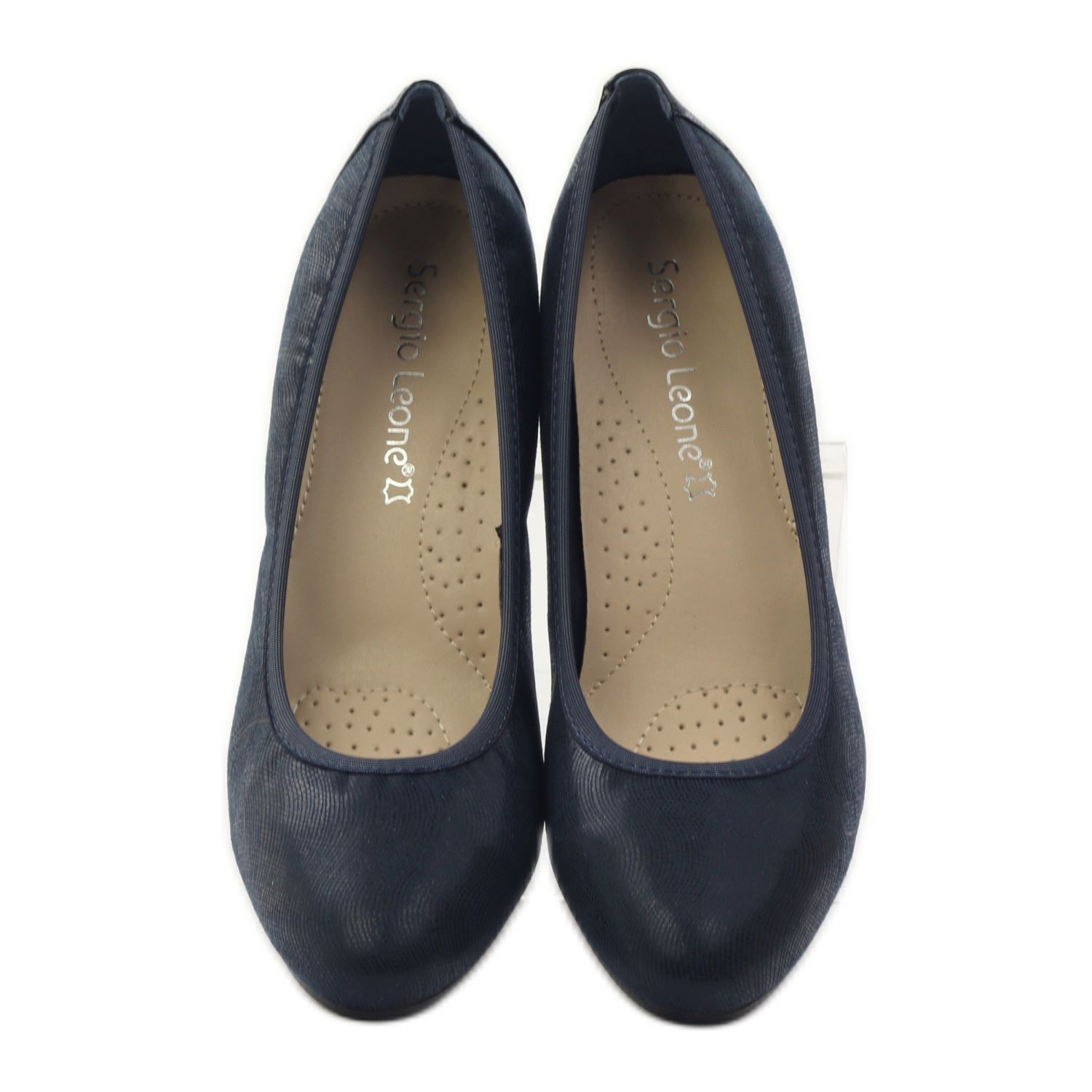 Model lodiček Sergio Leone. 233 v námořnické modré je perfektní volbou pro každou ženu, která chce spojit eleganci s pohodlím. Tyto klasické boty skvěle doplní jakýkoli styl, jak pro zvláštní příležitosti, tak pro každý den. Lodičky vyrobené z kvalitní ekologické kůže se vyznačují precizním zpracováním a jejich kožená stélka zajišťuje pohodlí při nošení.