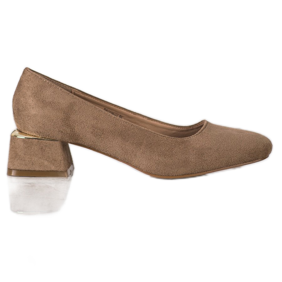 Stylové hnědé lodičky na širokém podpatku od Filippo jsou perfektní volbou pro každou ženu, která si cení elegance a pohodlí. Tyto dámské boty jsou ideální jak pro každodenní nošení, tak pro zvláštní příležitosti. Vyrobeny z ekologické semišové kůže, vyznačují se hladkým povrchem a zaoblenými špičkami, což jim dodává klasický a zároveň moderní vzhled.