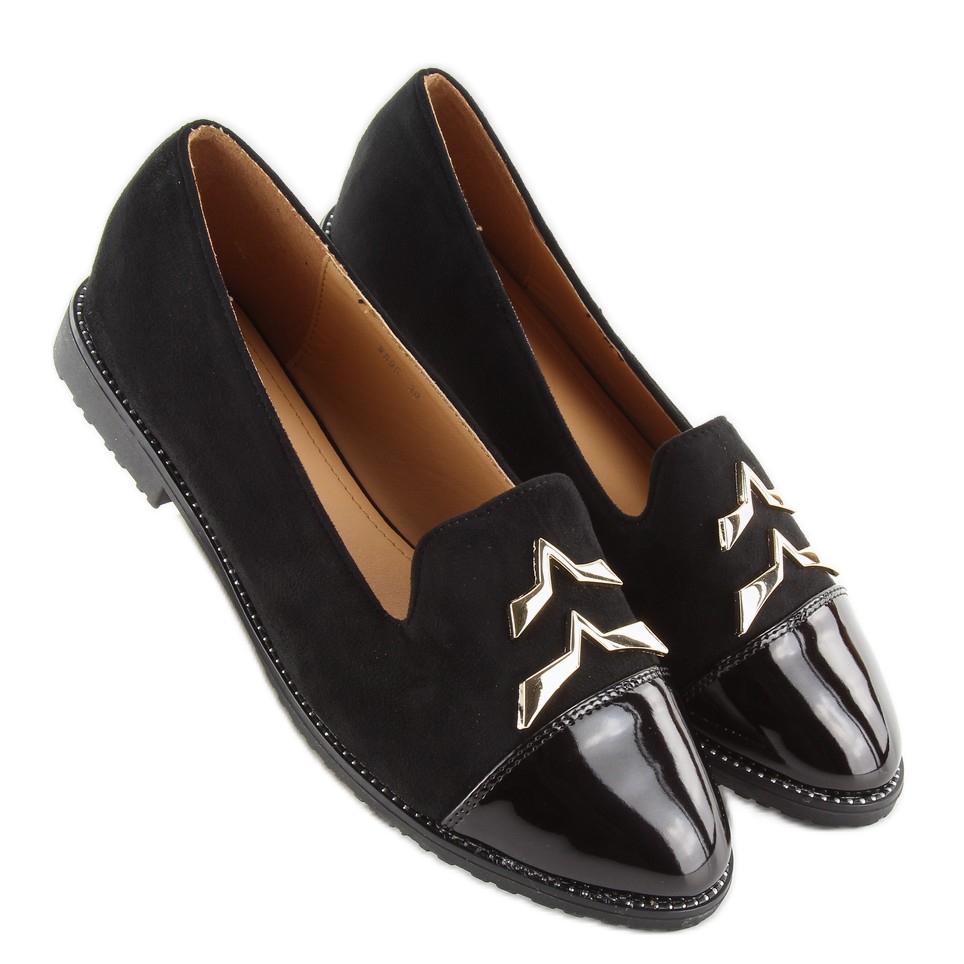Černé mokasíny se vyznačují patentovanými špičkami, které jim dodávají šik a sofistikovanost. Zlaté akcenty dokonale ladí s celkem a dodávají jedinečné kouzlo. Díky nazouvacímu zapínání je jejich nazouvání rychlé a pohodlné, což jistě ocení každá žena na běhu.