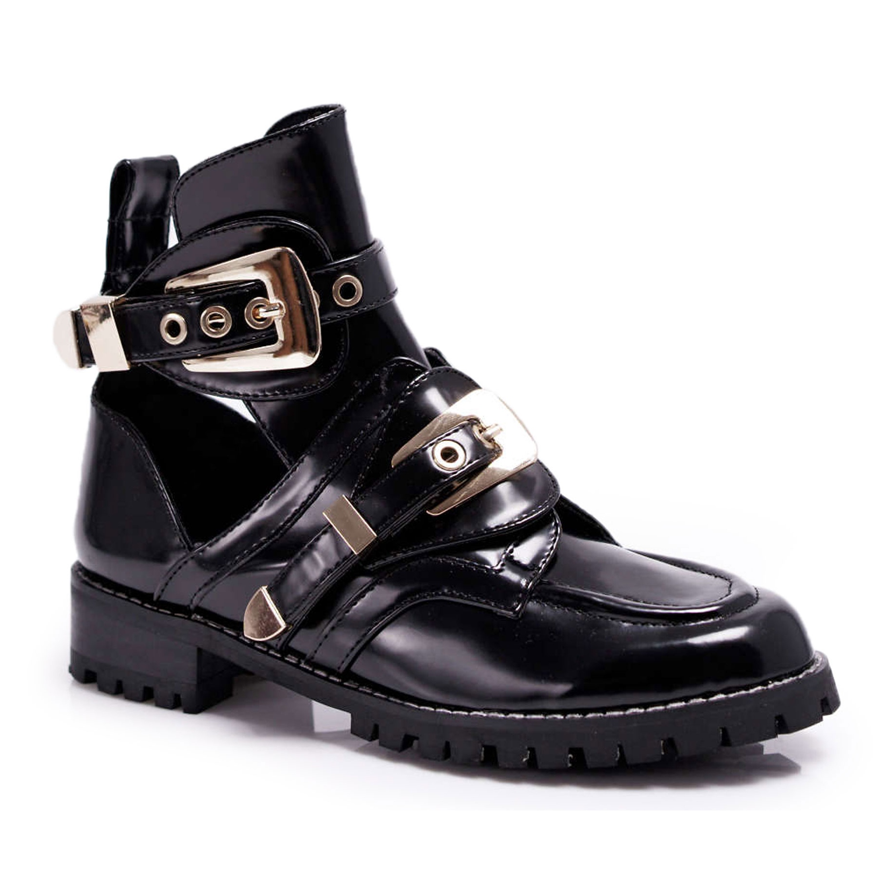 LU BOO Lu Boo černé lakované boty s výřezy Rock Girl černá