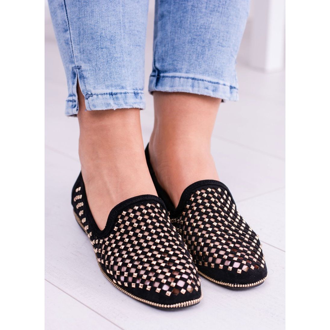 Objevte mimořádný styl s černými prolamovanými balerínkami Lu Boo, které jistě podtrhnou vaši osobnost! Tyto elegantní pány vyrobené z vysoce kvalitního ekologického semiše spojují pohodlí a moderní design. Prolamovaný vzor zdobený módními cvočky jim dodává jedinečný charakter, díky čemuž jsou ideální pro letní dny a večery.