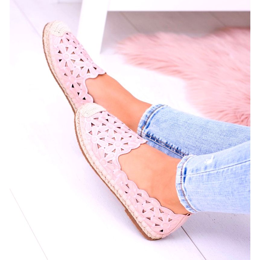 LU BOO Lu Boo Dámské balerínky Růžové espadrilky Macarena Flowers růžový