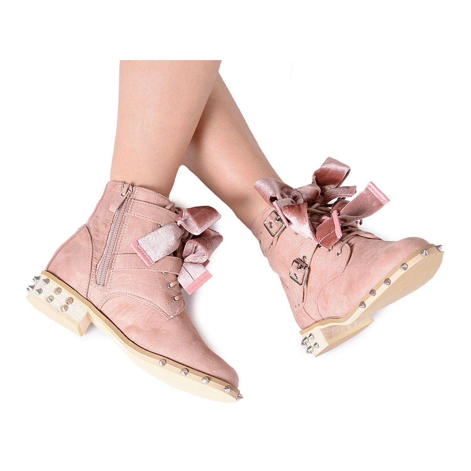 LU BOO Lu Boo | Dětské kozačky s cvočky mašle LittleCamila Powder Pink růžový