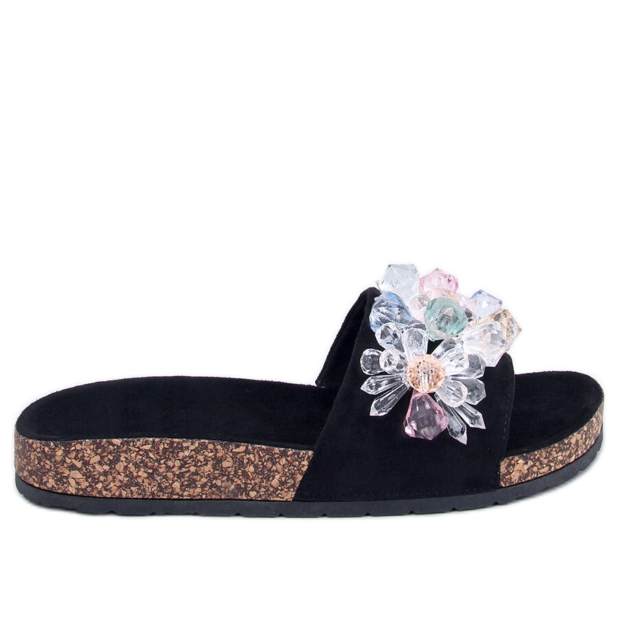 Maliv Černé korkové pantofle s kamínky černý