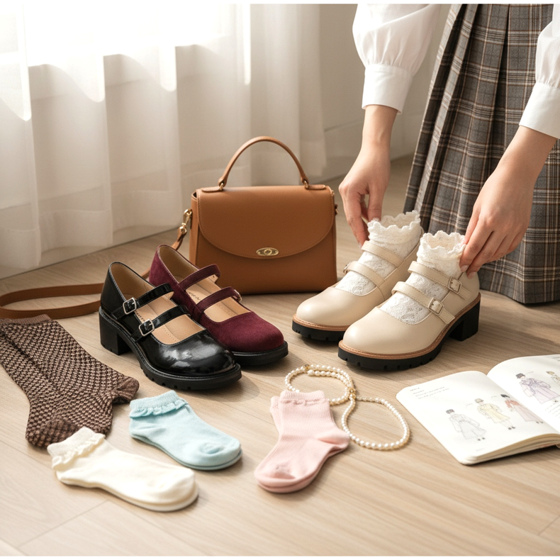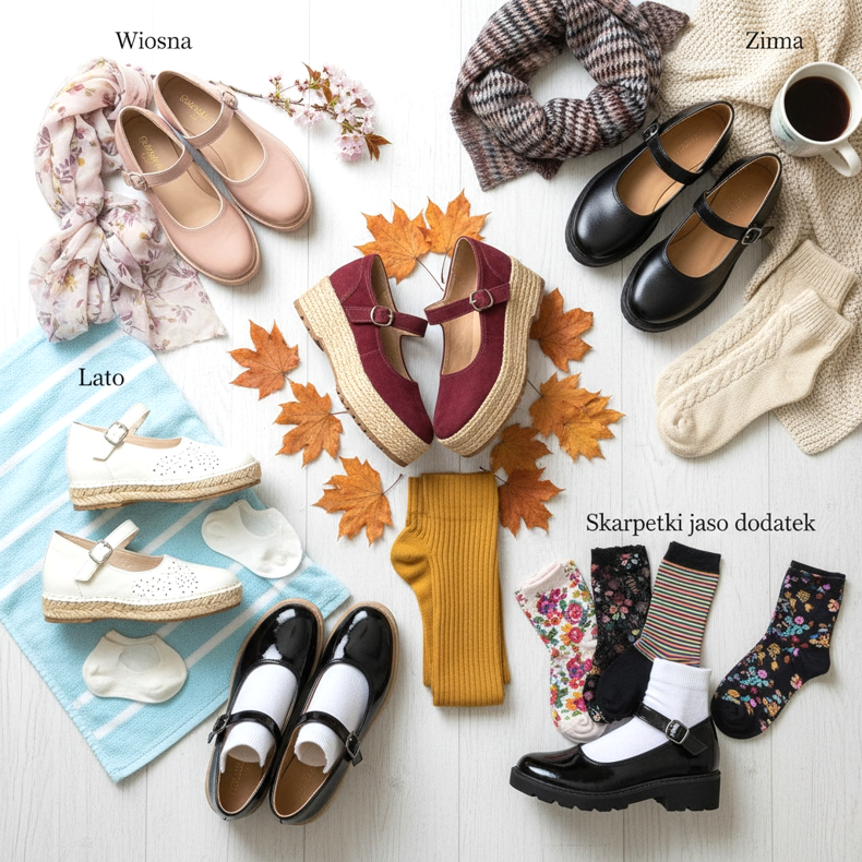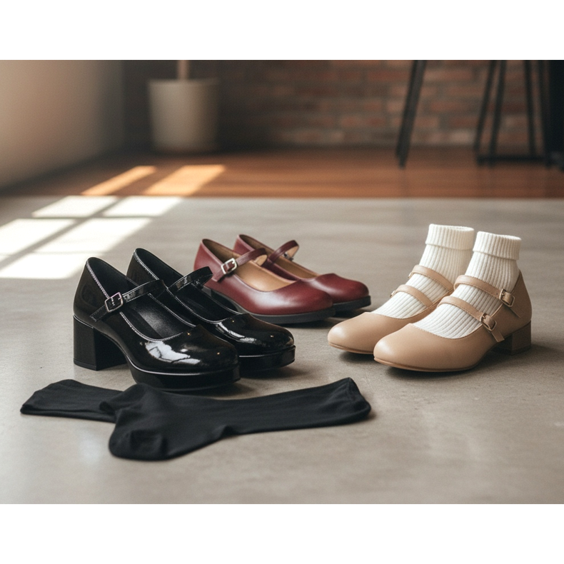 Ponožky jako doplněk – Mary Jane vypadá skvěle s ponožkami! Bílé a černé boty jsou klasické. Barevné, vzorované nebo krajkové ponožky dodávají charakter a teplo.