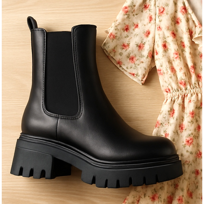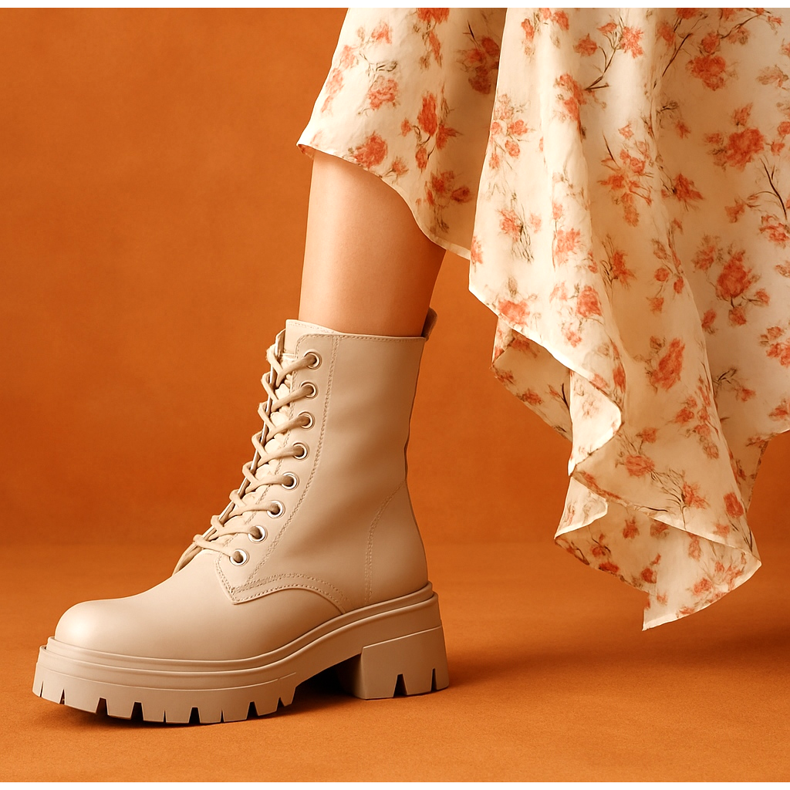 Masivní kozačky – jak nosit masivní kotníkové boty k splývavým šatům?