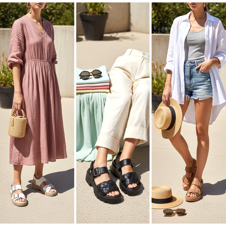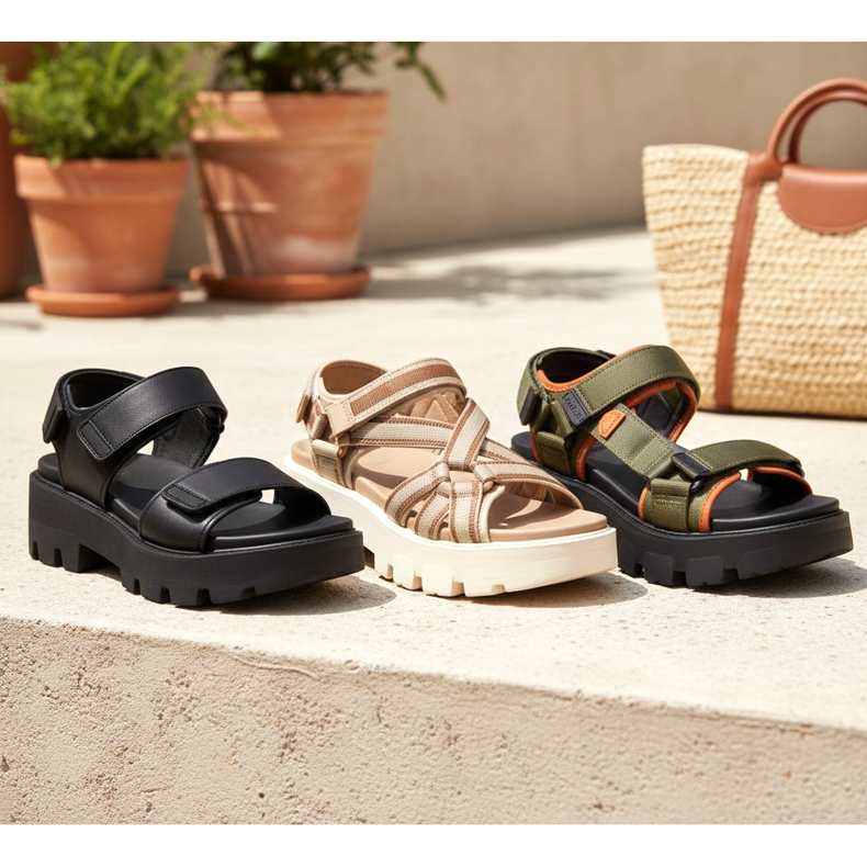 Robustní sandály se překvapivě snadno upravují, protože jejich masivní silueta dodává charakter i těm nejjednodušším soupravám.