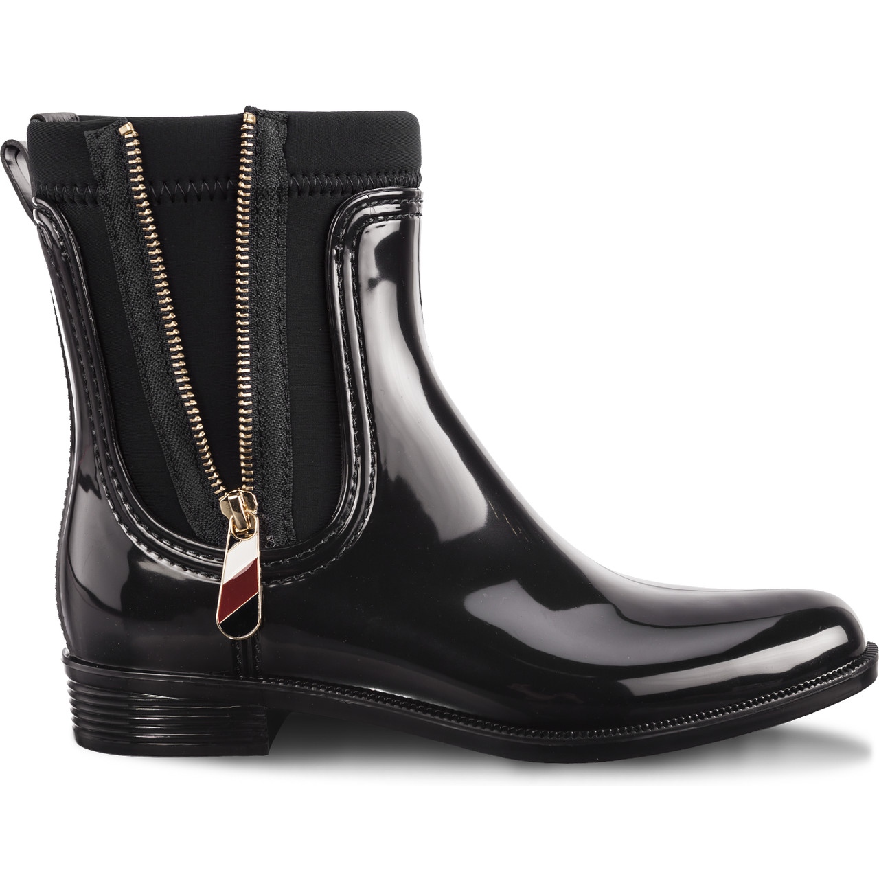 Tommy Hilfiger Material Mix Rain Boots 990 - černé, lakované dámské boty do deště, perfektní do deštivých dnů. Kombinace vysoce kvalitní gumy s panelem ze syntetického materiálu, elegantní povrchová úprava a praktické detaily dělají z této pohodlné a stylové obuvi pro váš každodenní šatník.