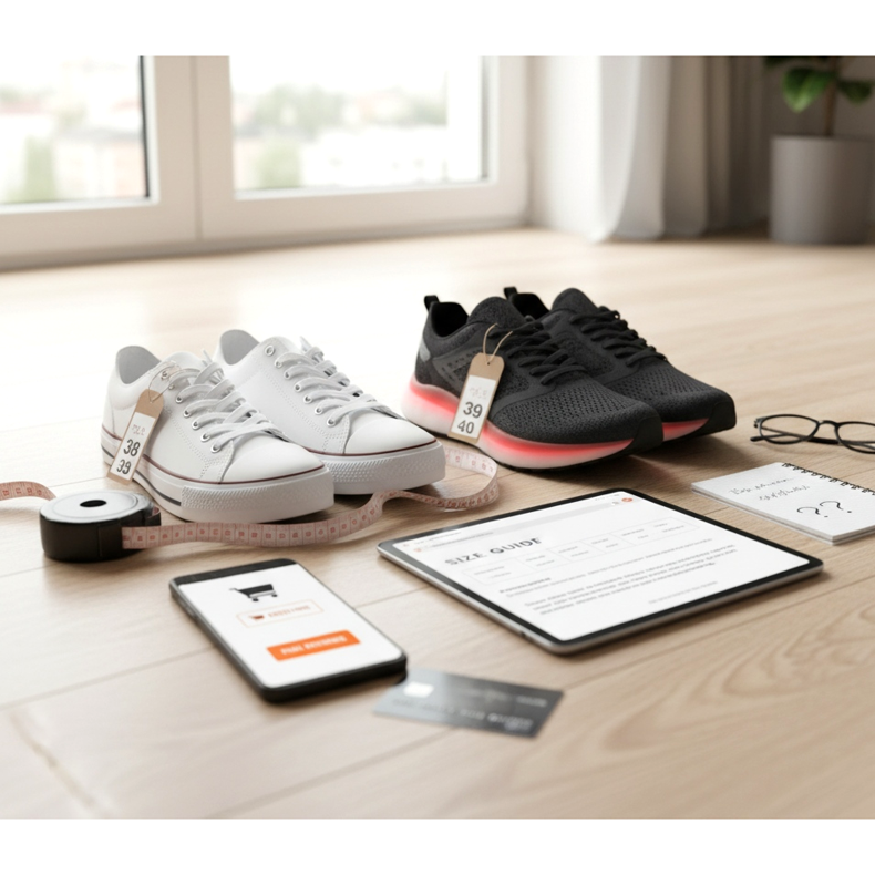 Zůstat v bezpečí při nákupu obuvi online spočívá ve třech věcech: znát svou velikost v centimetrech, číst tabulky velikostí pro konkrétní značku a číst recenze od ostatních zákazníků. Pokud je možné boty vrátit zdarma, vyzkoušejte dvě velikosti – jednu, o které si myslíte, že je vaše, a jednu pro každý případ. Pamatujte, že nové boty mohou být trochu těsné - to je normální. Pokud jsou ale příliš těsné nebo příliš volné, nemá smysl si je nechávat, i když se vám líbí.