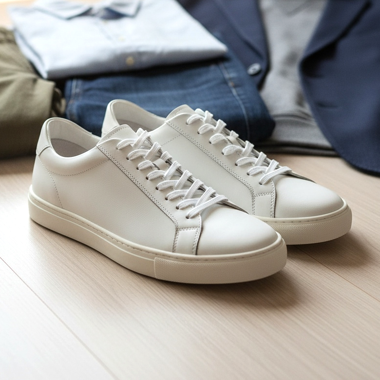 Bílé tenisky jsou mostem mezi sportovním a elegantním stylem. Díky nim působí ležérní styl upraveněji a formální oděvy – jako sako nebo košile – získávají moderní ležérní charakter.