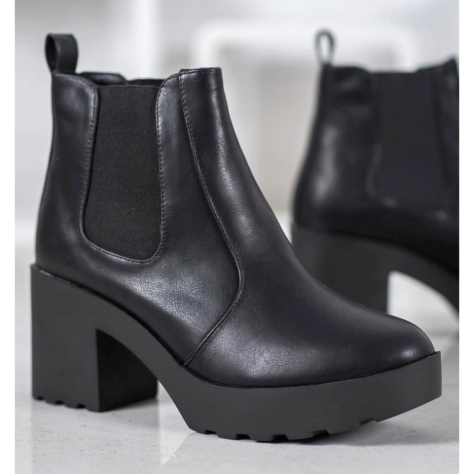 Boty Chelsea se vyznačují 10 cm vysokým blokovým podpatkem, který dodává nejen eleganci, ale také zajišťuje stabilitu při chůzi. Díky dodatečné 3 cm vysoké platformě nebudete pociťovat žádné nepohodlí ani při dlouhodobém nošení. Tyto nazouvací boty vyrobené z vysoce kvalitní umělé kůže jsou estetické i praktické.