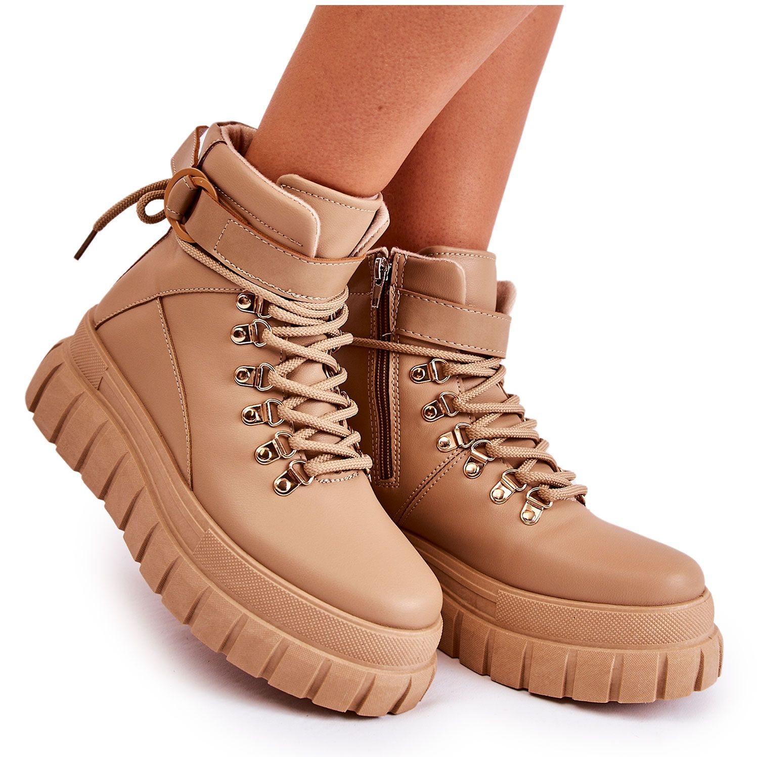 Módní dámské béžové kotníkové boty na platformě La Blanca s páskem jsou jedinečnou nabídkou pro ženy, které oceňují eleganci a pohodlí. Boty vyrobené z vysoce kvalitní eko kůže spojují moderní design s funkčností. Tento model má klasickou kulatou krajkovou vazbu, která umožňuje dokonalé přizpůsobení noze. Nastavitelný, neodnímatelný pásek jim navíc dodává charakter a zip na boční straně svršku usnadňuje obouvání.