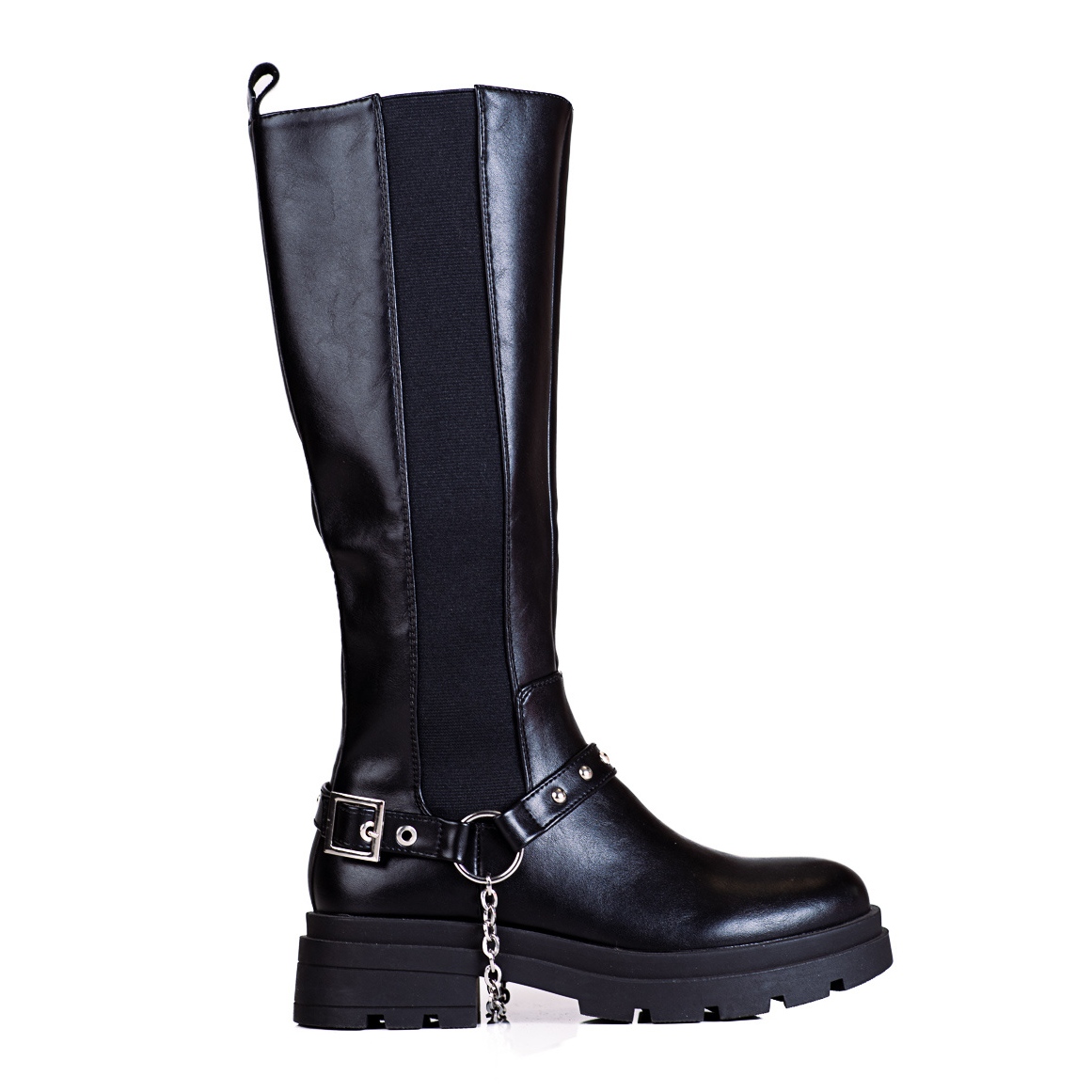 Elegantní boty v nadčasové černé barvě jsou nutností v šatníku každé ženy. Vyrobeny z ekologické kůže kombinují klasický řez s moderními detaily - dekorativní řetězec a jemnou horní linii, která sahá k kolenu (výška horního: 34). Díky kulatému, plnému -plnému prstu, jsou boty pohodlné i při delším nošení.