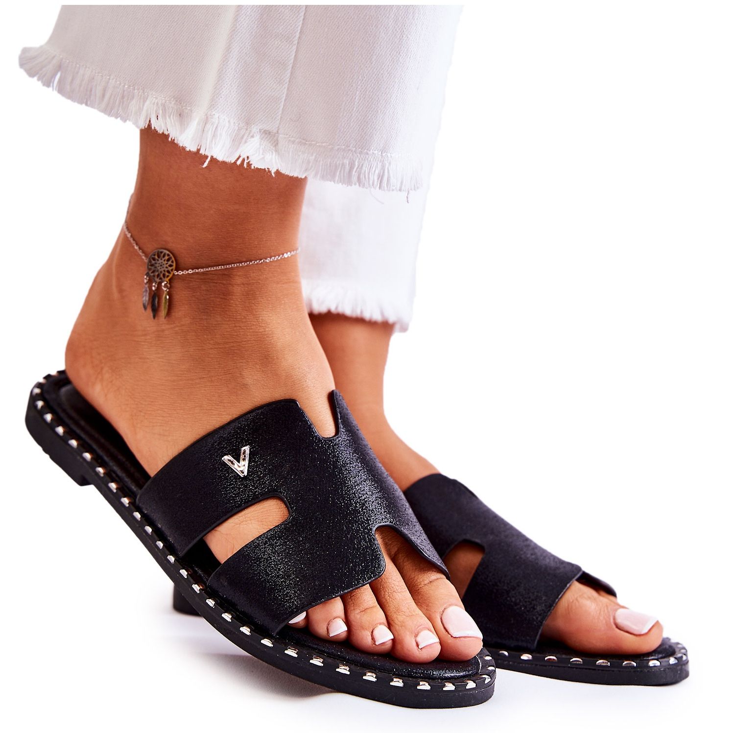 Podrobnosti: Vinceza Módní dámské pantofle s černým znakem Miquel