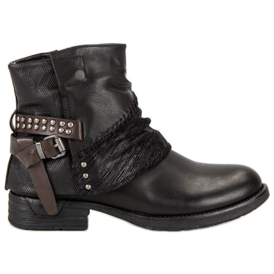 Objevte znovu módu s našimi jedinečnými černými dělnicemi! Tyto stylové boty zaujmou nejen svým originálním designem, ale také poskytují pohodlí a komfort. Svršek sahající nad kotník je pečlivě lemován přídavnými prvky z ekologické kůže, což jim dodává jedinečný, rockový charakter.