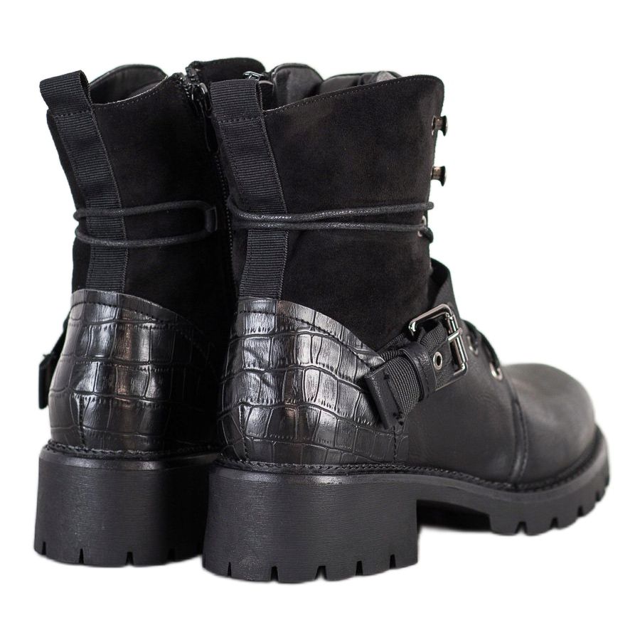 Kayla Modne Workers jsou díky ozdobné přezce a zapínání na tkaničky a zip funkční i estetické. Stabilní podrážka s nášlapem z plastu a 2 cm vysoká platforma zajistí pohodlné došlapy každý den.