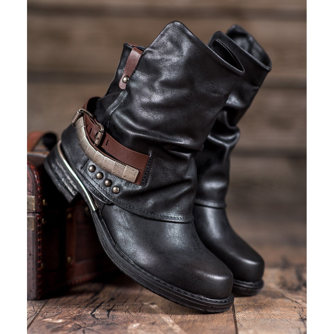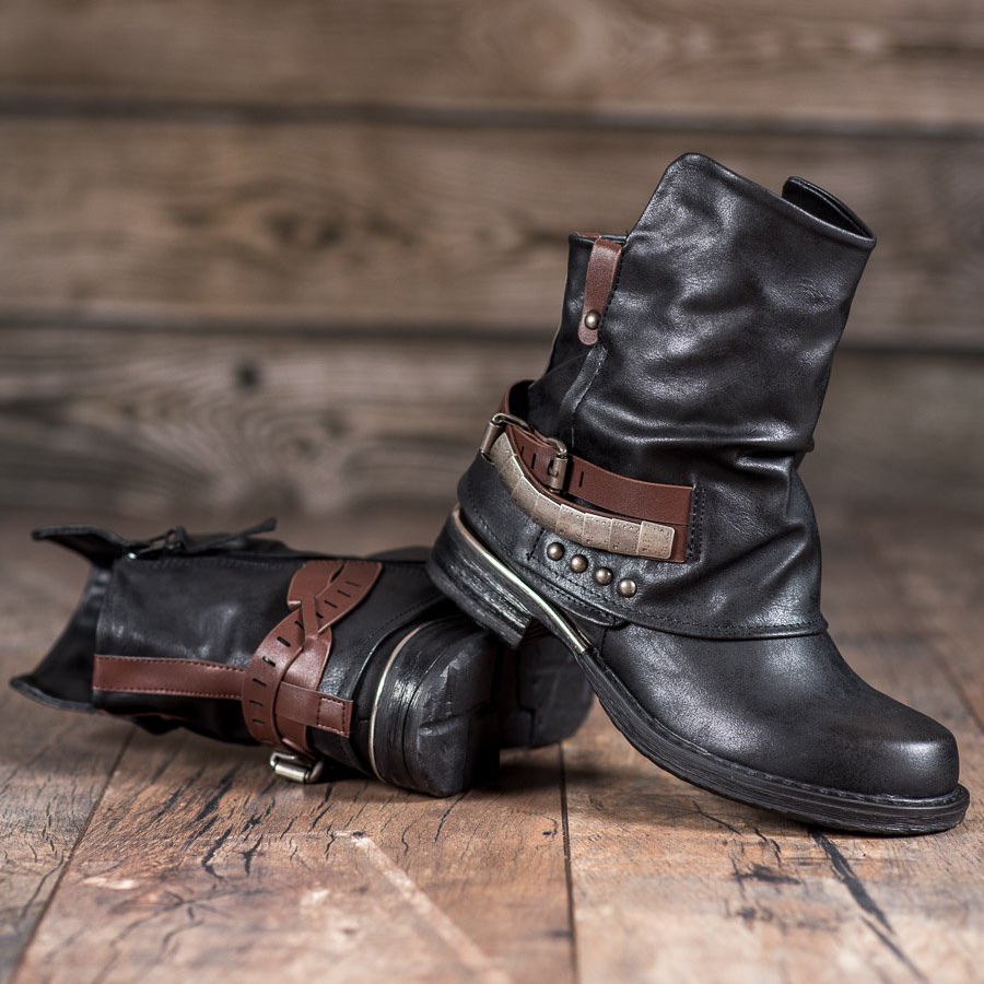 Boty se vyznačují vysokým svrškem 15 cm, který perfektně udržuje nohy a kotníky v teple, chrání je před studeným větrem zejména při jízdě na motorce. Další překrytí ze stejného materiálu poskytuje dodatečnou ochranu a kulatá špička a celý 2,5 cm podpatek zajistí každodenní pohodlí.