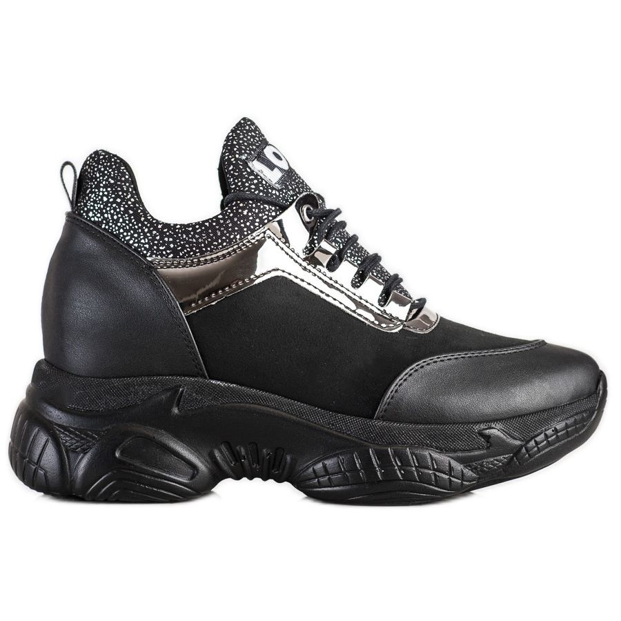 SHELOVET Módní tenisky na klínku Love v černé barvě jsou perfektní volbou pro ženy, které chtějí spojit pohodlí s módním vzhledem. Tyto sportovní boty na klínku se vyznačují elegantním designem a praktickým řešením, které se skvěle hodí pro každodenní nošení.
