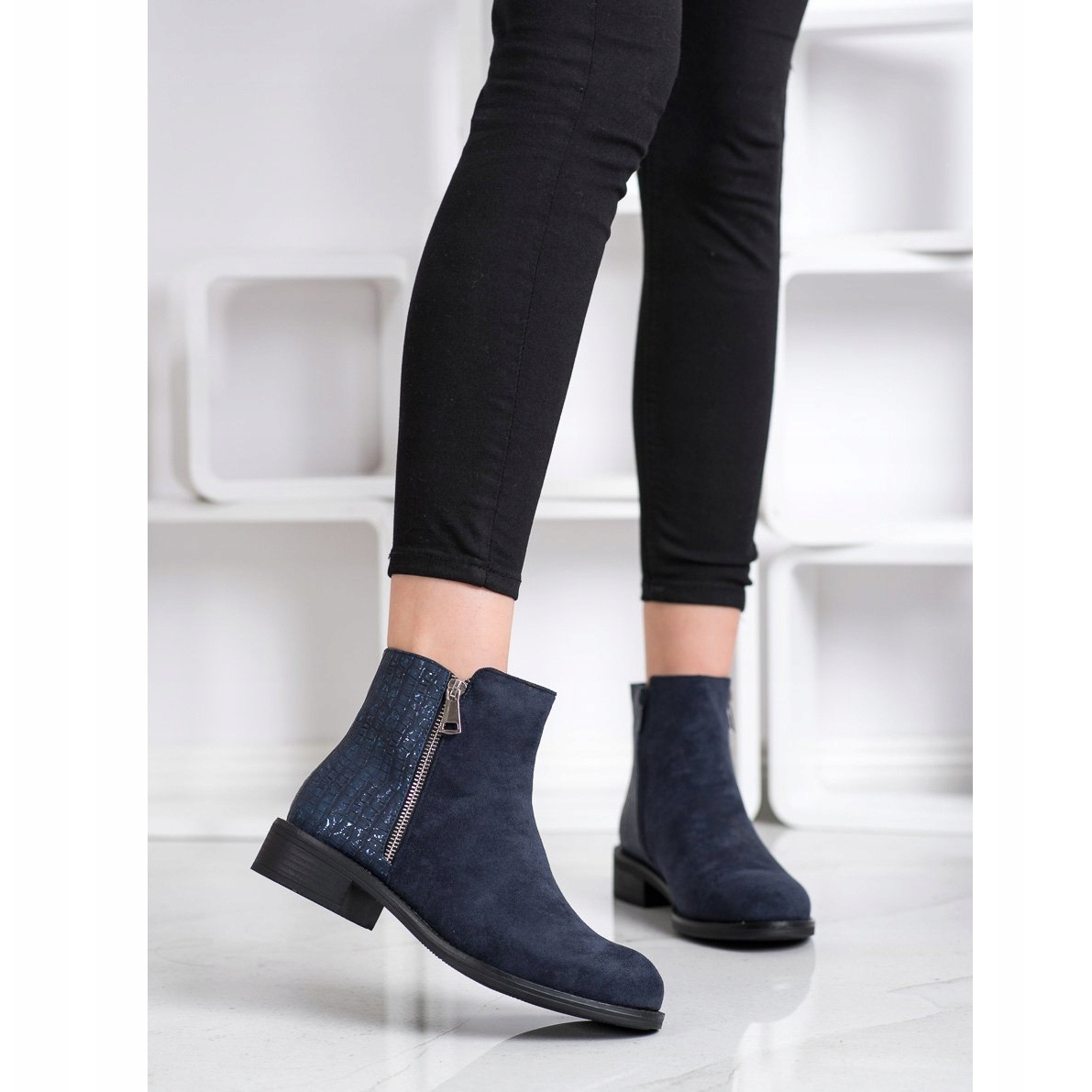 Módní boty Bestelle Zipper Boots v tmavě modré a modré barvě jsou perfektní volbou pro každou ženu, která chce spojit styl s pohodlím. Tyto boty vyrobené z vysoce kvalitního semiše a imitace kůže jsou skvělou volbou pro sezónu podzim/zima.