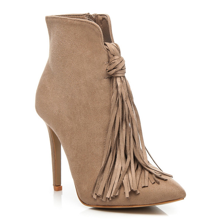### Módní hnědé kotníkové boty s třásněmi od Comer