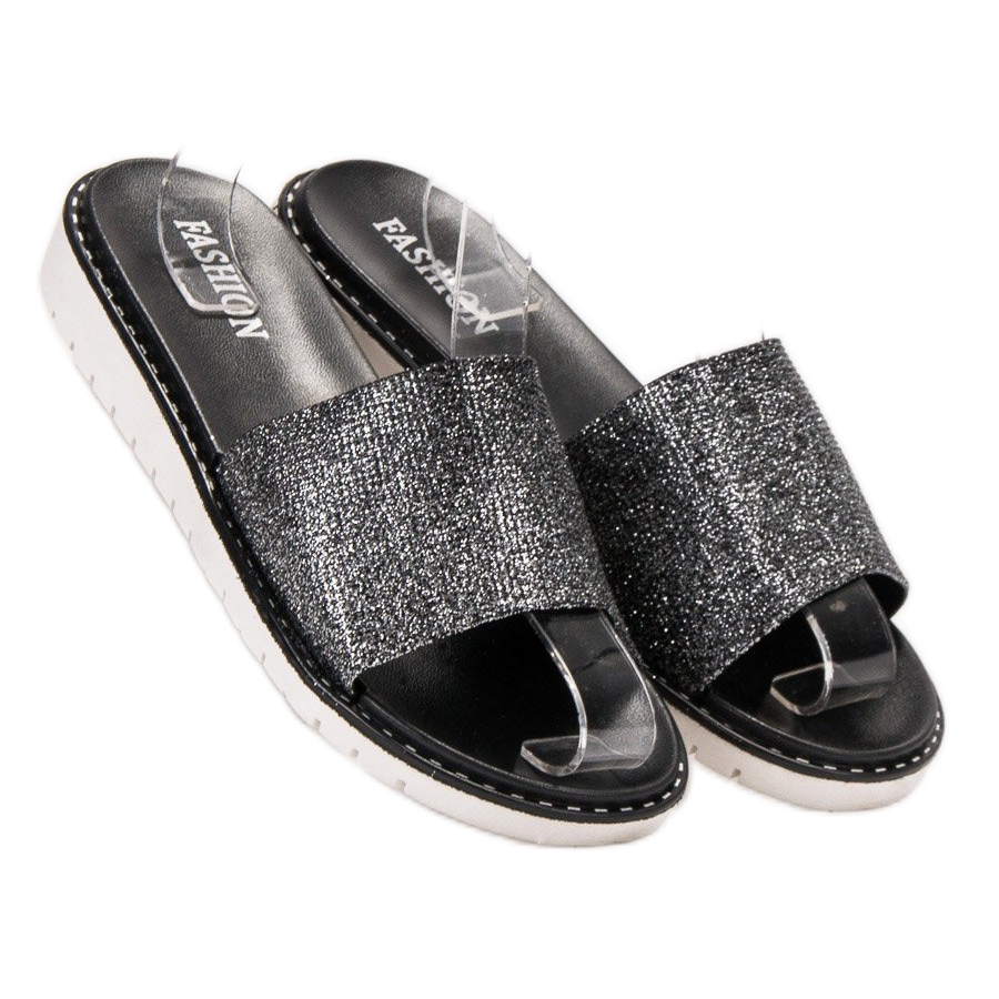 Fashion Módní lesklé pantofle černý