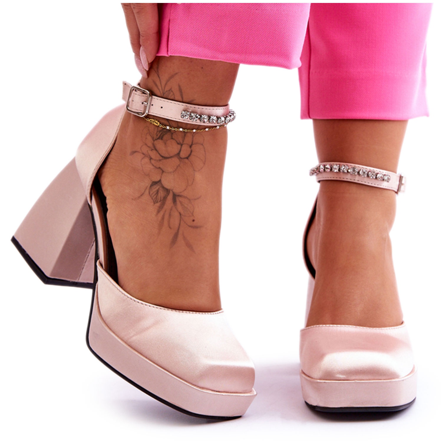 Inna marka Módní lodičky na masivních podpatcích se zirkony béžová Adel béžový