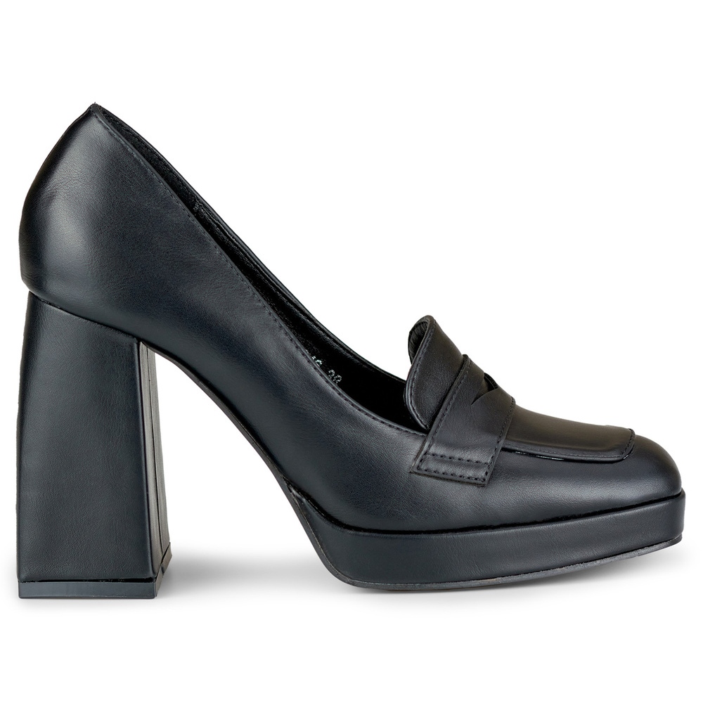 Módní mokasíny na vysokém, širokém sloupku černý