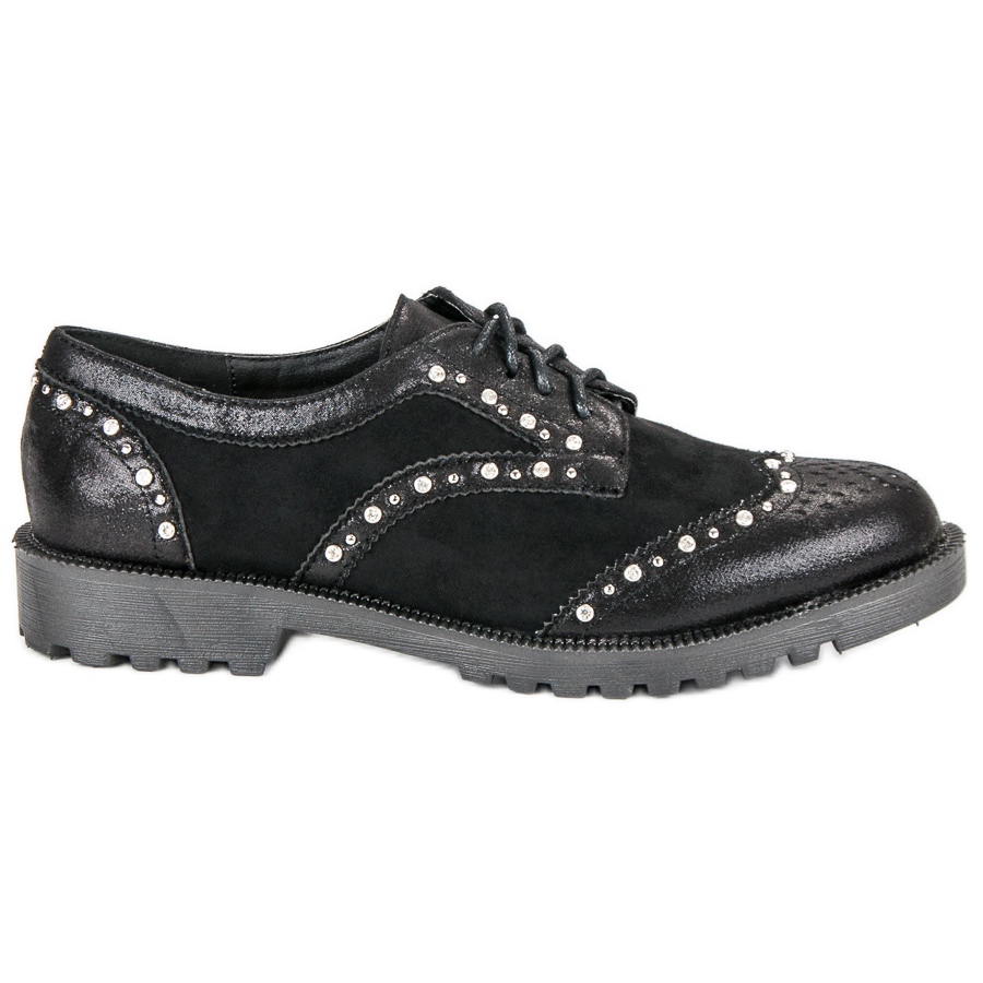 Boty mají praktické šněrování, díky kterému skvěle padnou na nohu. Plochá pohodlná podešev vysoká 3 cm nezatěžuje páteř a zpevněná pata dodává stabilitu. Navíc poutavé detaily v podobě kamínků přitahují pozornost a dodávají celku módní ráz, díky čemuž přitahuje pozornost každý krok v těchto botách.