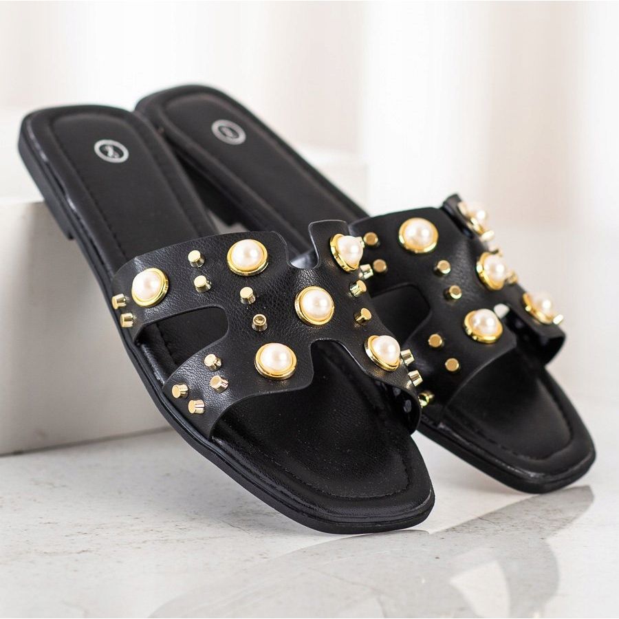 Podrobnosti: SHELOVET Módní pantofle s kamínky černý