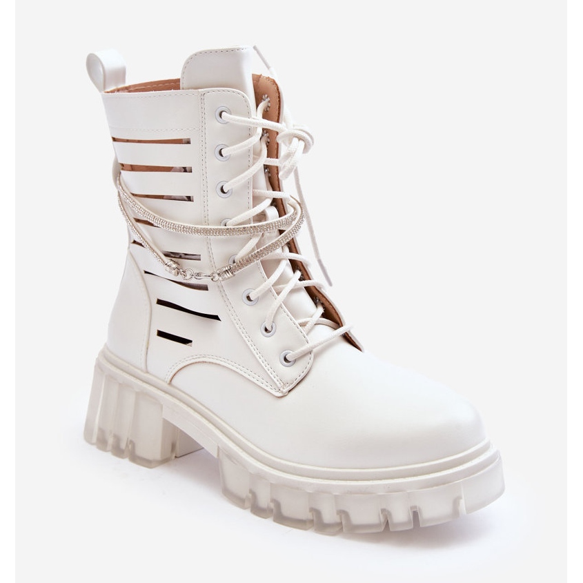 Módní boty pracovníci s dekorativním popruhem - Rocky (bílá)