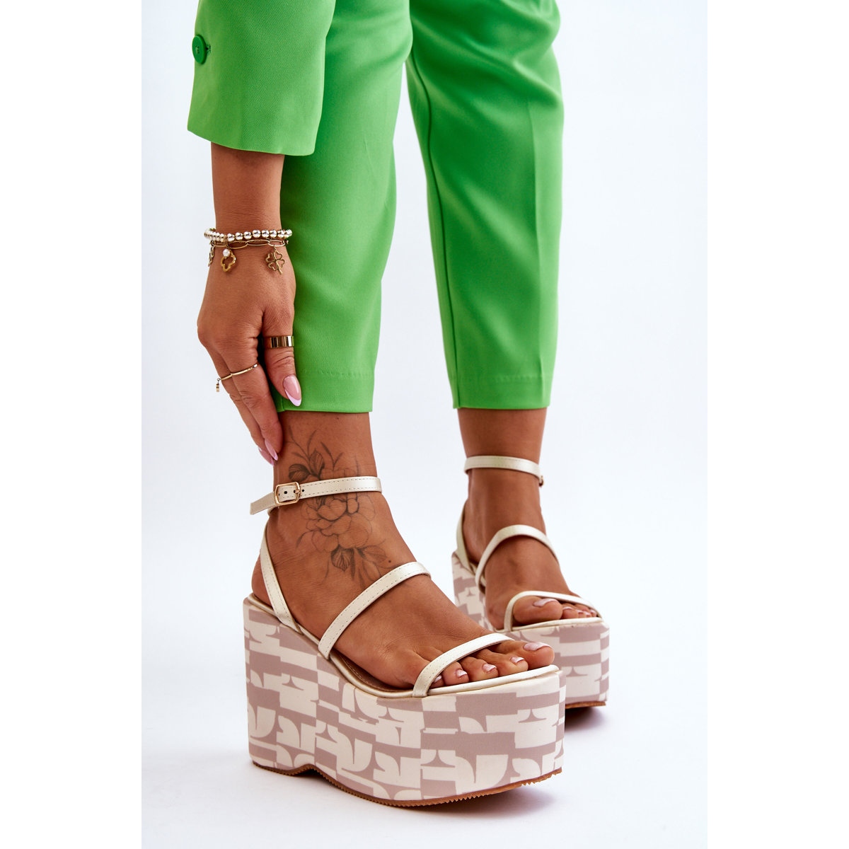 FS1 FS1 Módní sandály na klínu se vzory béžová Claria hnědý
