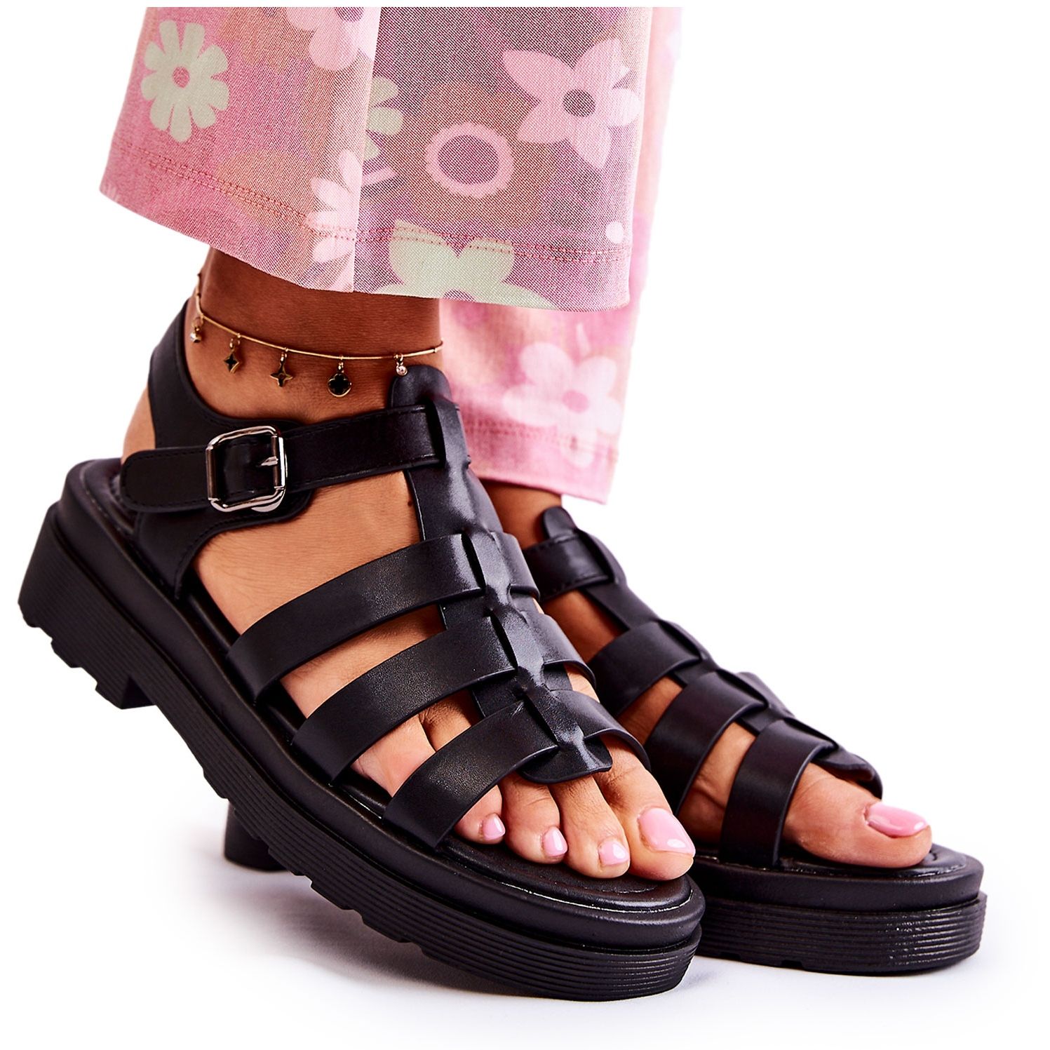 Tyto sandály se vyznačují plochým podpatkem a platformou, díky čemuž jsou extrémně stabilní a zajišťují komfort nošení po celý den. Měkká stélka z ekokůže zajišťuje pohodlí chodidla a eliminuje nepohodlí spojené s dlouhodobým používáním.