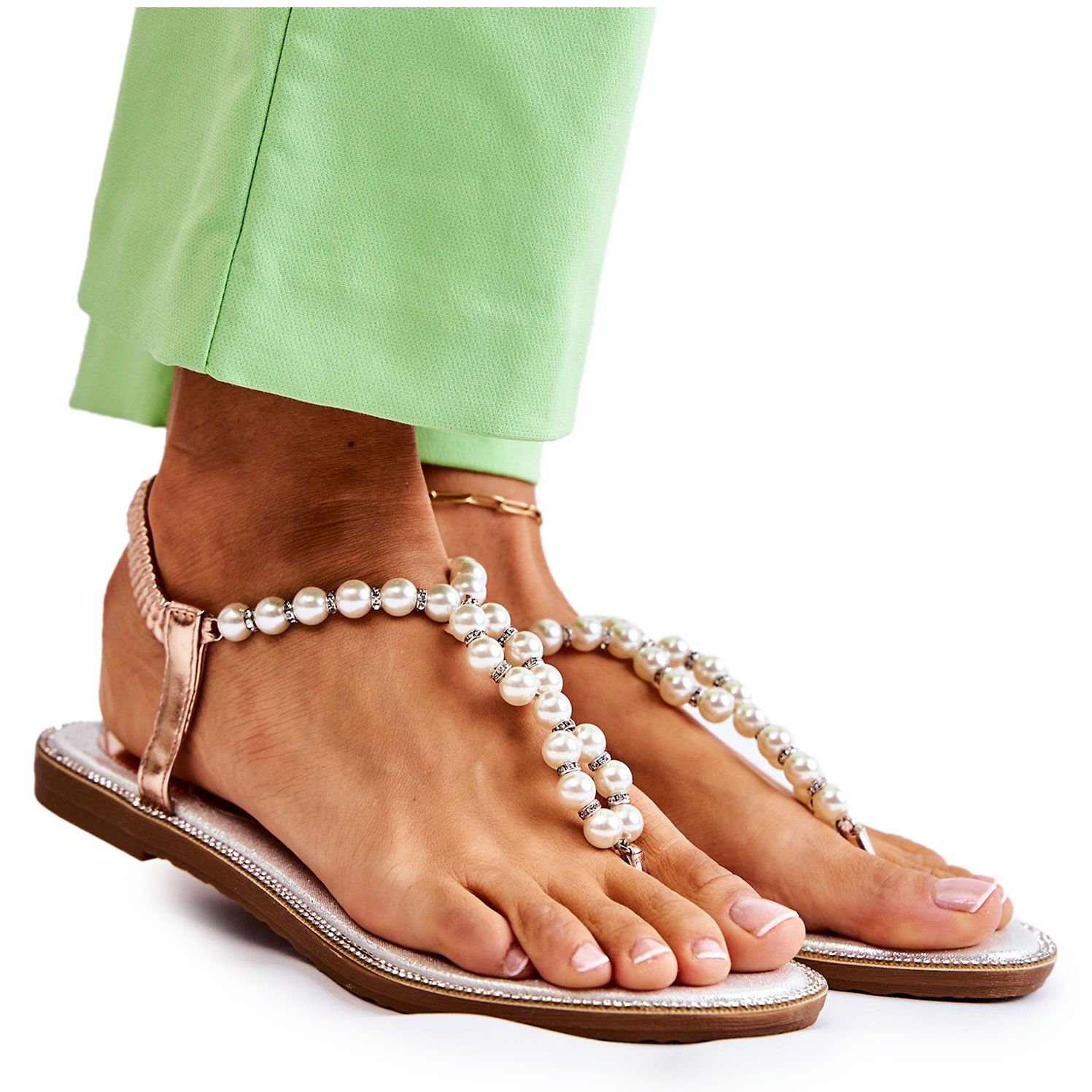 PG1 PG1 Módní sandály žabky s perlami Rose Gold Isalia růžový zlatý