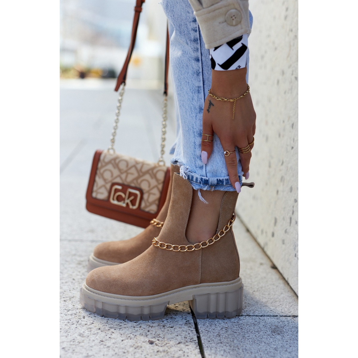 Elegantní, nadčasové boty vyrobené z přirozené semišové kůže, která vaše stylizace dá zřetelný charakter. Jemné výřezy po stranách svršku, odnímatelný dekorativní řetězec a praktický zámek na boku kombinují estetiku s pohodlím použití.