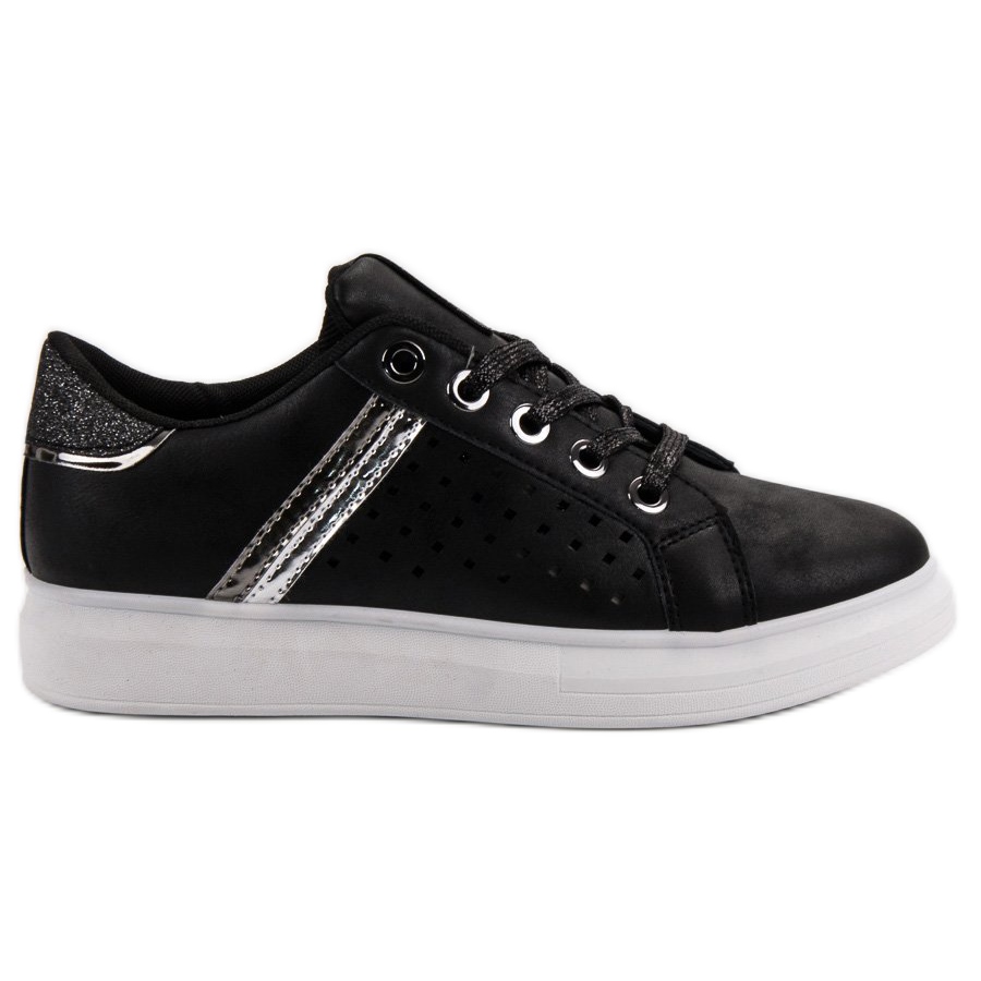 Objevte módní sportovní boty v elegantní černé, které se stanou nepostradatelným prvkem vašeho šatníku! Tyto jedinečné boty byly obohaceny o lesklé doplňky, které jim dodávají moderní charakter a dokonale zapadají do aktuálních trendů. Díky silné podrážce, která opticky zeštíhluje postavu, bude každý krok lehký a stylový.