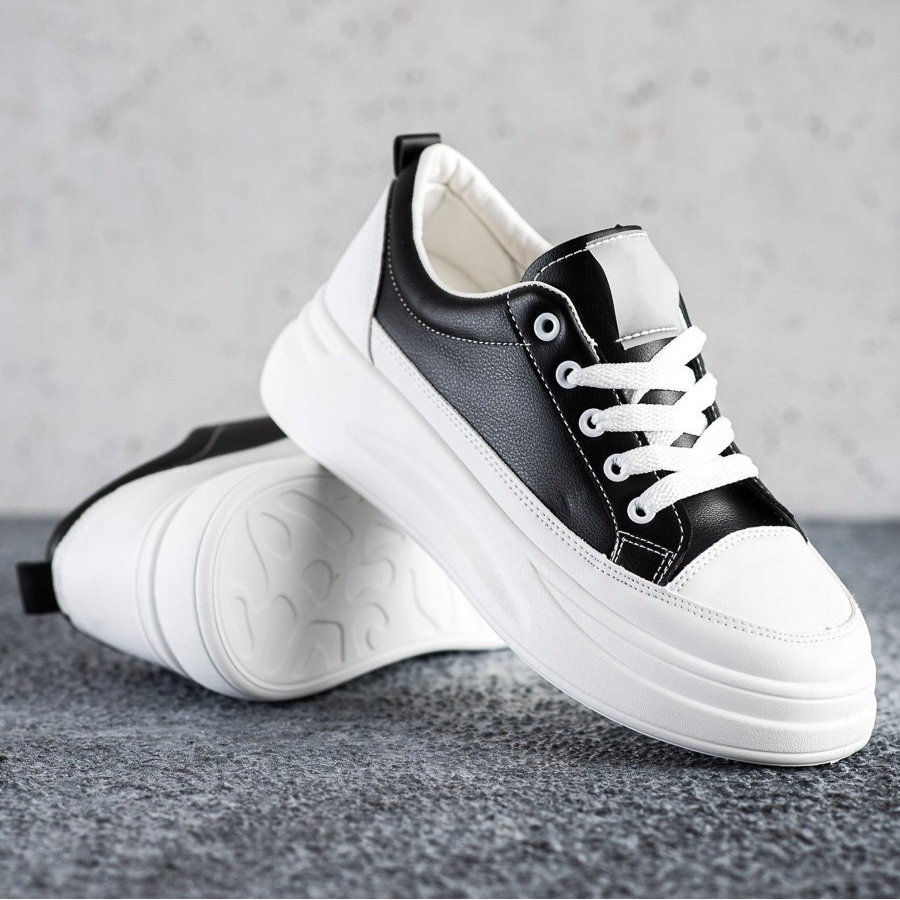 Představujeme módní tenisky na platformě značky SHELOVET - ideální volba pro ženy, které si cení módního designu a pohodlí. Tyto stylové černé tenisky vyrobené z vysoce kvalitní imitace kůže dokonale odpovídají aktuálním trendům a kombinují sportovní styl s elegancí.