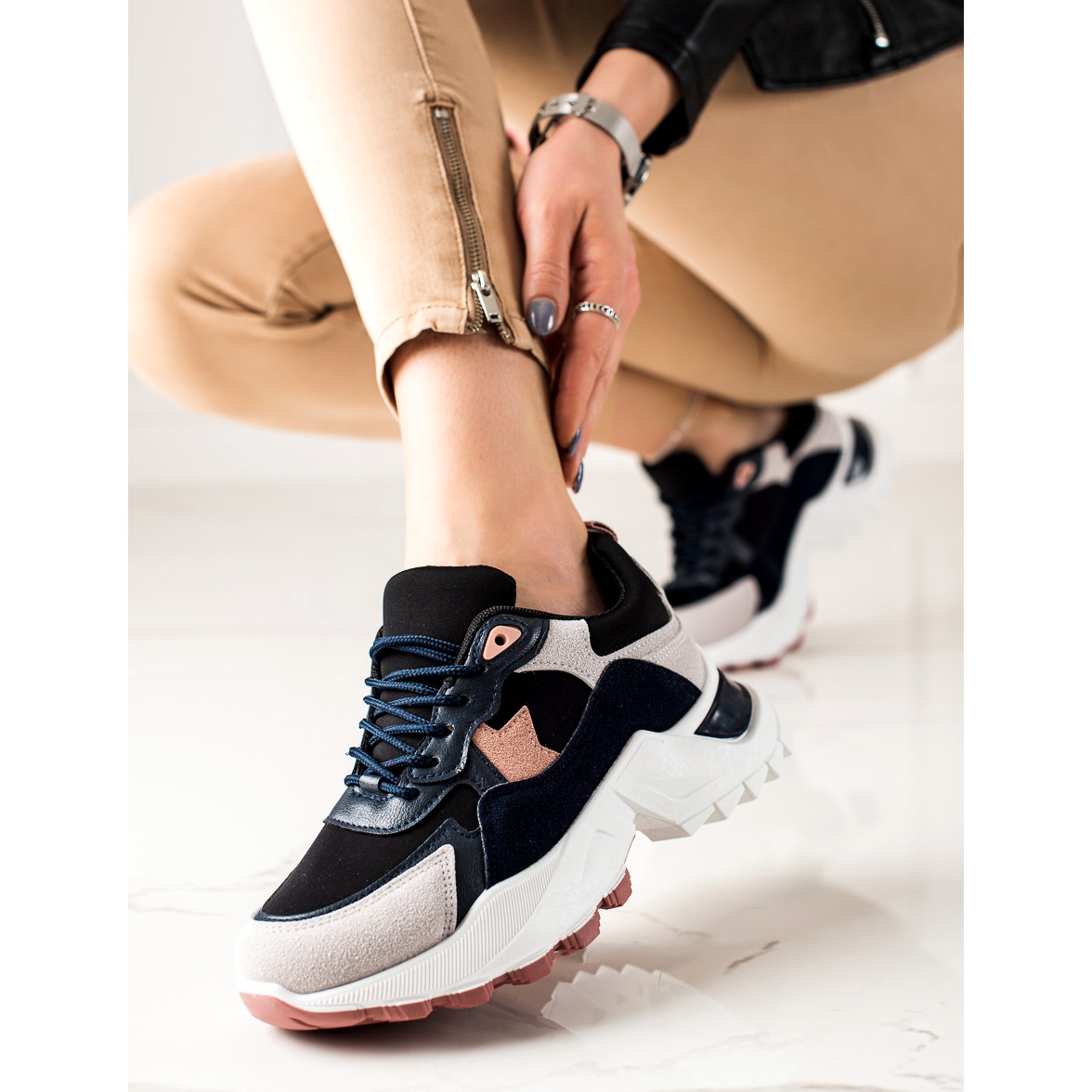 Představujeme módní tenisky od výrobce Sweet Shoes, ideální pro ženy, které si cení pohodlí a stylu. Tento model je k dispozici ve třech módních barvách: béžové, černé a růžové, díky čemuž je snadno sladíte s jakýmkoli ležérním stylem.