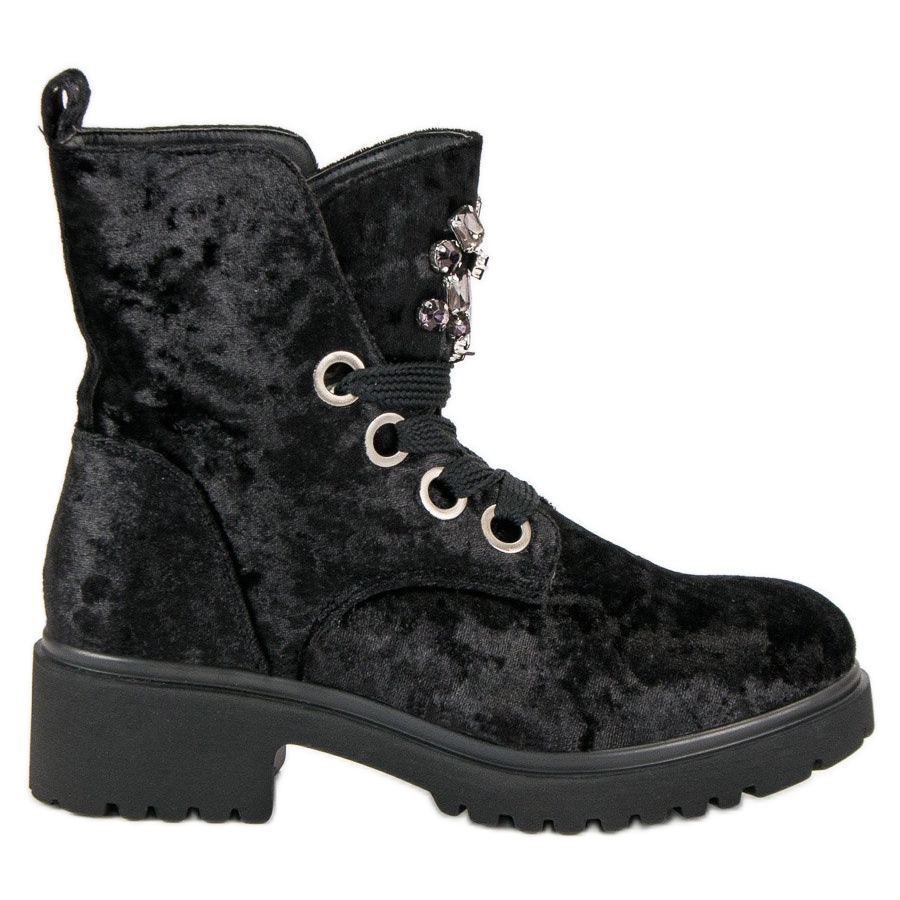 Objevte eleganci a pohodlí v jednom díky velurovým kotníkovým botám Kylie v klasickém černém odstínu. Je ideální volbou pro ženy, které oceňují módní design a každodenní pohodlí. Kozačky se vyznačují jemným zdobením krystaly, které jim dodávají jedinečný charakter a přitahují pozornost.